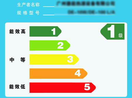 國家在2015年正式推出《熱泵熱水器機(器)能源效率標(biāo)識實施規(guī)則》(以下簡稱規(guī)則)?!兑?guī)則》將空氣能熱水器的能效等級劃分為五個等級,分別為1~5級。從5至1,能效等級越來越高,代表著熱水器消耗同樣的電能,可以產(chǎn)生的熱量越多、越省電。