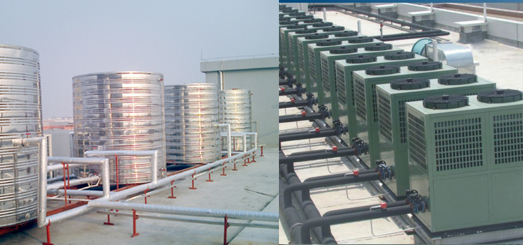 酒店熱水系統(tǒng)選擇:結合酒店供熱水特點,石家莊華源科技推薦酒店場所安裝空氣能熱水工程來供熱水??諝饽軣崴こ逃煽諝饽軣岜谩⒈厮?、循環(huán)系統(tǒng)、管路系統(tǒng)、控制系統(tǒng)等部分組成。