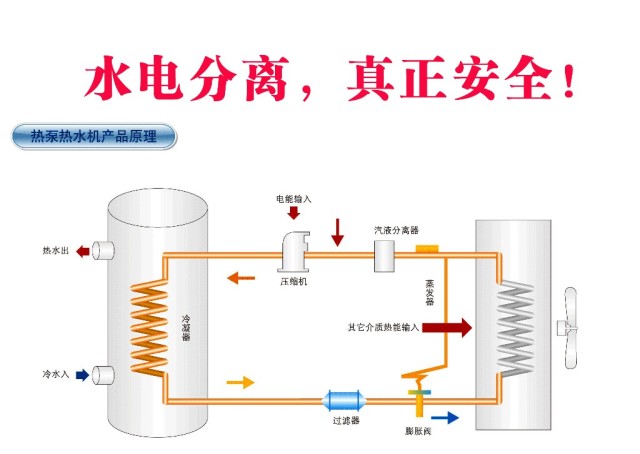 那么,區(qū)別于燃氣洗浴,空氣能熱水器真正做到了水電分離,安全性能更好,帶給消費者更加舒適的使用體驗??諝饽軣崴鞯陌l(fā)展至今已經(jīng)經(jīng)歷了數(shù)十年的歷史,只不過真正以獨立的熱水器形式進入到大家的生活中則是近十多年的事情。早期的空調(diào)配置,在制冷系統(tǒng)中安裝上電磁四通閥門(又稱作換向閥),通過四通閥門切換方向,改變制冷劑的流動方向,空調(diào)就可以制熱??諝饽軣崴饕彩且源卧恚瑝嚎s機排除的高溫高壓蒸汽狀的制冷劑流向保溫水箱里的冷凝器,將熱量傳送給水箱中的自來水并且進行加熱。熱泵熱水器通過吸收室外空氣中的熱量,電帶動壓縮機進行換熱工作,比單獨的使用電加熱熱水器更加節(jié)能省電,節(jié)能可達到75%以上。